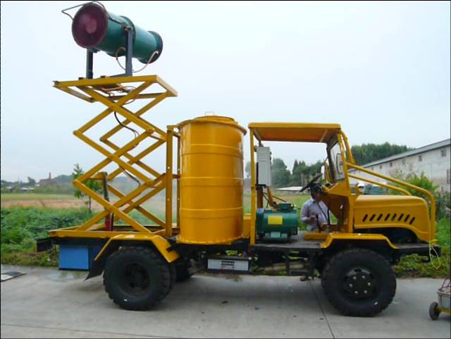 | 产品名称:移动式喷雾车 型式: 四轮驱动 举升架高(m) :5 发电机功率:20kw 风机旋转角度:360度 射 程:30~50(m) 水箱容积(m3 ):1.6 风筒最大举升离地高度(m):5 |